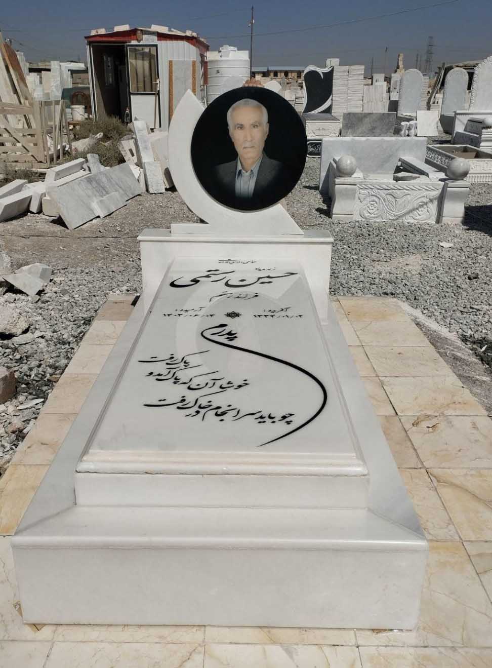 سنگ مزاری که درتصویر مشاهده می فرمائید از نوع سنگ نانو درجه یک ساخته شده است ،بدنه وقرنیز این کار از سنگ قبر مرمریت سفید رنگ ساخته شده است،ترکیب این دونوع سنگ بسیار مقاوم وزیبا که در این تصویر مشاهده می فرمائید از هر لحاظ (مقاومت در برابر خش و….) می تواند انتخابی مناسب برای ایجاد یادبود برای عزیزان سفرکرده آسمانی باشد.کتیبه بسیار زیبا که امکان چاپ عکس ولیزر توسط بهترین هنرمندان سنگ تراش  مجموعه بزرگ آوان با ظرافت وزیبایی صورت می پذیرد.